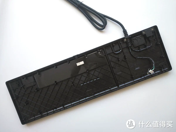 ▲说实话,这个键盘的下盖确实让我一惊,底部好多XX加强筋,甚至于侧面边框也有,键盘下盖的稳定性不需要有任何担忧了。